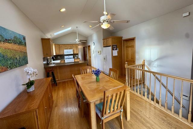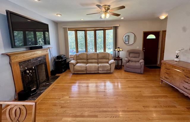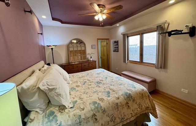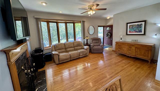 Built in 1999, this solid brick 6BR/3BA Ranch, with full and finished lower level offers room for everyone! Main level features LR and DR area with HW flooring, beautiful gas fireplace, and a remodeled full bath with walk-in Kohler shower & linen closet! Light & bright kitchen w/skylights, garden window over sink, room for big table, and sliders to deck! There are three BR’s on this level, including a main BR w/ensuite full bath with jetted tub! Stairs to lower level are off of the kitchen and feature a safety gate. Lower level offers three more BR’s, a spacious full bath, with shower/tub & linen closet, & big utility room w/upgraded washer, dryer, 80 gallon water heater (2024), Lennox furnace (2021) and utility sink! Lower level ends with a huge FR designed for a large family and entertaining! You’ll find another gas fireplace, wonderful wet bar (including barstools, microwave & small refrig) and endless possibilities! Exterior features include a detached and oversized 2 car garage w/security pin pad, fenced & concrete patio from the lower level walk-out, and great space under the deck! Additional interior features include ADT security system, intercom system, glass block, recessed lighting, and 6 ceiling fans. Additional exterior features include newer roof (2020), sidewalk, sewer clean-out, upgraded gutters and a great location! Situated on the east side of the street, across from the greenbelt on Cumberland that runs from Addison to Belmont, there are no homes across the street! Schiller Woods and Indian Boundary GC is close by, and the property is being offered “AS-IS”. Quick close possible.