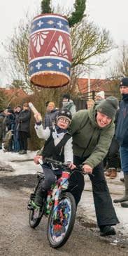 Som afslutning på årets fastelavnsaktiviteter afholdt Tøndestokken søndag tøndeslagning fra cykel ved det gamle vandværk i Store Magleby. Foto: TorbenStender