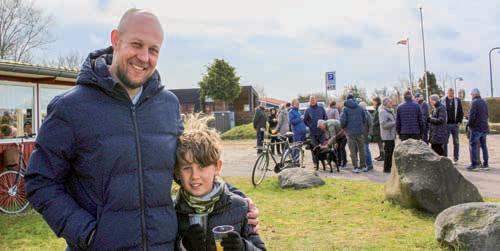anden, kom de i hvert fald til det, for alle hilste på alle. Men selvom der var travlt med at hilse på hinanden, skævede kolonihaveejerne mod flagstangen søndag den 5. april klokken 11. For der var flaghejsning for at markere sæsonens start. Nicklas Kjærsvold, der er formand for foreningen, stillede sig op på en sten sammen med sin søn for at holde en lille velkomsttale. Derefter blev der sunget »I østen stiger solen op«, mens flaget blev hejst. Da flaget var hejst, blev der klappet, og man kunne