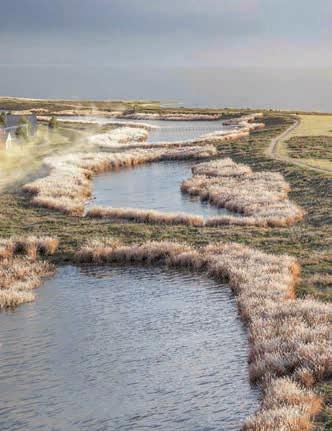 kommer til at opleve en ændret kystlinje med et helt nyt kystforland. Det er en måde at hindre høje digebyggerier. Forlandet kommer til at bestå af et bredt stykke med strandvolde, der ifølge projektforslaget kommer til at ligne landskabet Kofoeds Enge syd for Søvang. Et stort forland vil kunne
