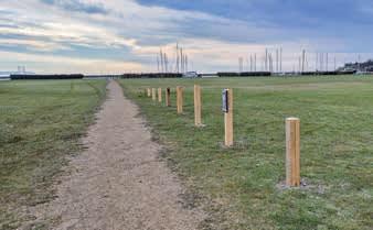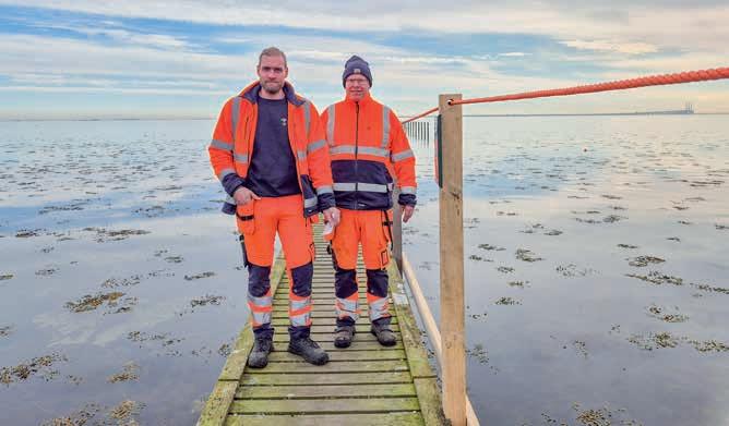 dige på Nordstranden er der sat en kombination af stolper og reb, der tilsammen former et »dige«, der rager et pænt stykke op over den nuværende bro. »Det var koldt at stå i vandet og montere det,« konstaterer Simon Olsen, der sammen med Lars Petersen selv har været med til at sætte dem op.