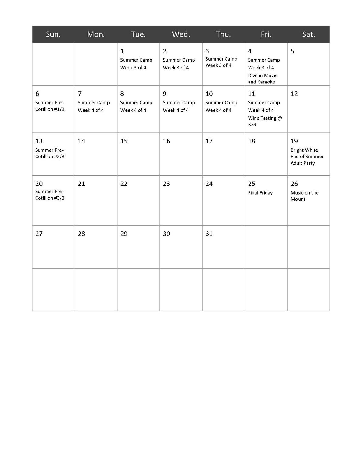 Sign up on the Club Calendar by Friday, August 18.