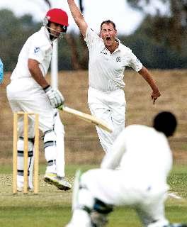 Tenacious Tiger: Opening bowler Matthew Thomson is close but without luck for Werribee on this occasion.
