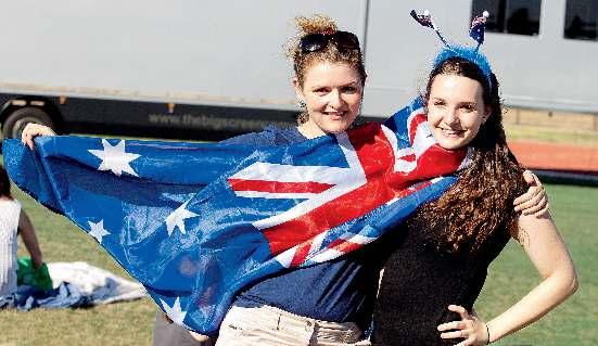 Wyndham residents including Melissa Longo and Alexandra King (pictured) showed off their national pride during the city’s Australia Day celebrations on Sunday. The Victoria University athletics track in Werribee was a sea of Australian flags, camping chairs, picnic rugs and Eskys as residents watched performances by local musicians and queued up for carnival rides. The event coincided with celebrations for the municipality’s 150th anniversary and culminated in a fireworks display. \ LAURA LITTLE