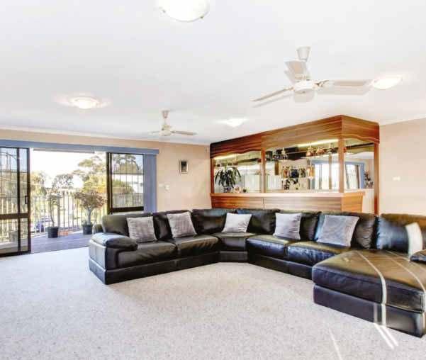 large, carpeted living room with copper-topped bar and access to a balcony with views over parkland. These rooms are able to be separated with timber concertina doors, giving plenty of flexibility. Also on this level are two bedrooms and a bathroom.