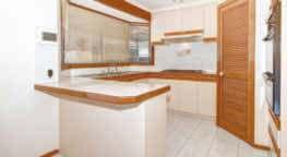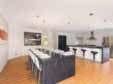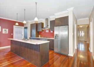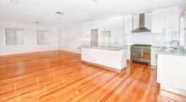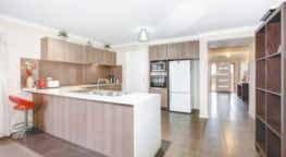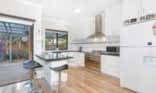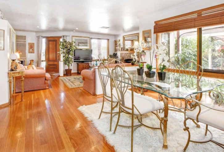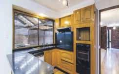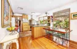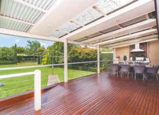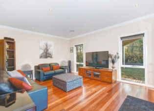 floor plan and warm decor – reflected in its wooden-framed windows, Tasmanian oak floorboards and cedar venetians – allows for the best of indoor/outdoor living for all the family.
