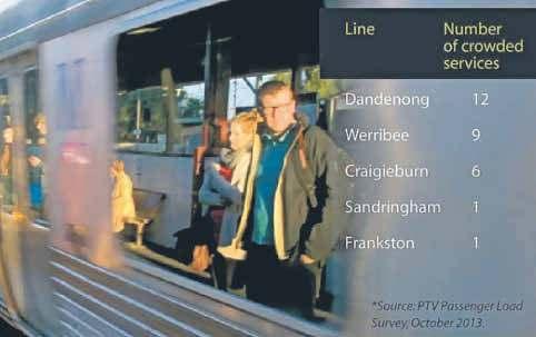 Latest passenger load survey results from Public Transport Victoria reveal that five of Melbourne’s train lines are overcrowded during the morning and evening peaks. e surveys, conducted on 12 weekdays in October, found that nine of the Werribee line’s 41 peak-period trains were overcrowded.