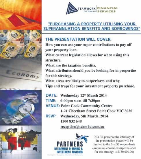 The Discussion Paper and online submission form is available on Council’s website at www.wyndham.vic. gov.au/ratingstrategy from Tuesday, 25 February 2014 or by contacting 9742 0848. Community members wishing to make a submission should complete the online submission form by Tuesday, 25 March 2014.