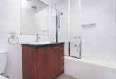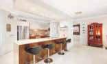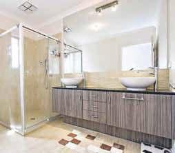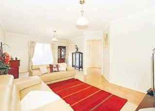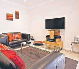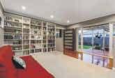 sleeping wing to the left includes the main bedroom with mirror-front wardrobe, picture rails and Travertine marble en suite with frameless shower, oating vanity and toilet. Another two bedrooms each with built-in wardrobe, a powder room and understairs storage room or study are also in this wing.