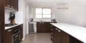 double oven, four-burner gas cooktop, Qasair rangehood and Bosch dishwasher, granite benchtops and insinkerator.