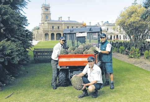 Visitors strolling through the gardens at Werribee Park are less likely to be hit by a pine cone falling from a tree a er a Parks Victoria harvesting effort.