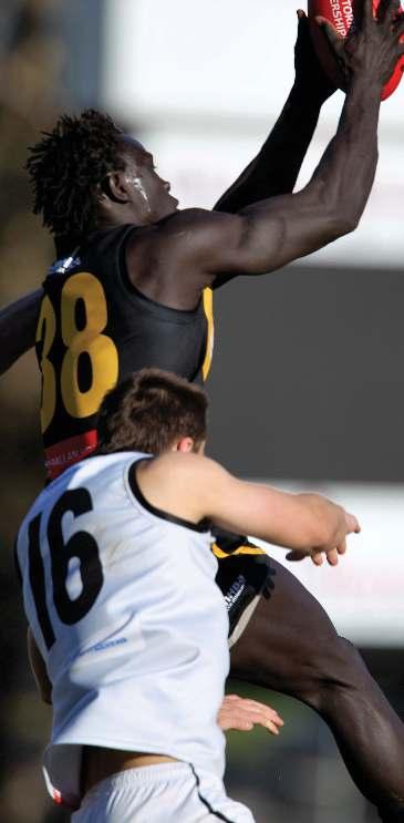 Calder 3.5 to 2.1. But that wasn’t enough to reel in the deficit, with the Cannons able to hold on for the 10.9 (69) to 9.11 (65) win. Mark Orr, Liam McMahon and Connor Menadue were among the best players for the Jets, and were well supported by three goals from Pele Manivong. e Jets slipped to 6-6 for the season and are sixth on the ladder.