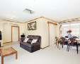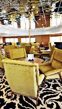 e passenger cabin also has two nine-inch drop-down DVD screens, at the front and rear, and there are tray tables that fold down from the seats in front to complete that airliner feel.