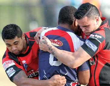 Altona ball carrier Peter Nakubuwai runs into the Bears’ defensive wall. (Damjan Janevski)
