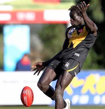 e day got worse for the Tigers and its AFL a liate North Melbourne when young up-and-coming key forward-ruckman Majak Daw le the eld on a stretcher.