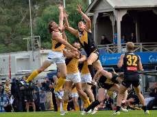 Jobi Harper, Nathan Laracy and Jake Wilson o ered encouraging signs for the Tigers. Mason Wood and Addam Maric snared two goals apiece, while Lee Dale booted one in his Tigers’ senior debut.