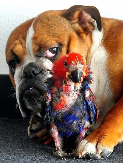 Parrot and pooch nd puppy love