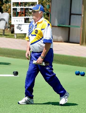 Hoppers player-coach Ian Andrew watches his bowl like a hawk. (Wayne Hawkins)