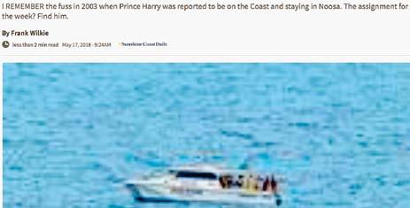 Mmm. When I called the deputy dawg for an update on his feelings about the spare royal, Frank still seemed more excited about snaring a couple of keepers in a gutter at Sunshine Beach than he was about the non-encounter with Harry. But he did say: “You have to feel some sympathy for him. I suppose it was a bit of a silly assignment, but I don’t regret anything about me newspaper reporting days in Noosa. I think I learnt a lot about my community.” Prince