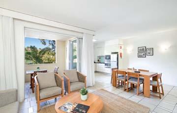 On the ground floor and towards the Hastings St end of the Noosa Harbour Resort, it enjoys front-row seats as there are only 10 two-bedroom apartments in resort in which you can walk straight out of the lounge and into the water.