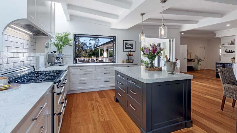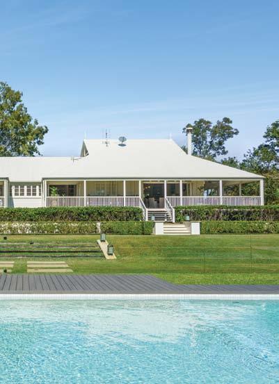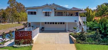 Listed at offers over $1.795m, the twolevel Queenslander-inspired home is set high and positioned in the middle of the property that features lush gardens and dam.