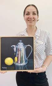 Amy-Lee Lanzon with Bruce in her art nook. Picture: ROB MACCOLL