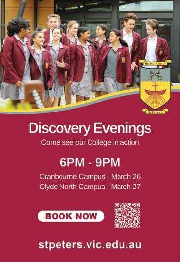 32 STAR NEWS | Thursday, 14 March, 2024 cranbournenews.starcommunity.com.au At Cranbourne Secondary College we are a respectful, responsible, learning community. Join us for our Open Evening Wednesday 20 March 2024 Come explore our excellent facilities and meet our friendly staff. Open from 5.30 pm. Tours available. Information sessions 6 pm & 6.30 pm Scavenger Hunt to go into a draw to win a $500 school voucher. Stawell Street, Cranbourne 3977 www.cranbournesc.vic.edu.au | 03 5996 3544 | cranbourne.sc@education.vic.gov.au