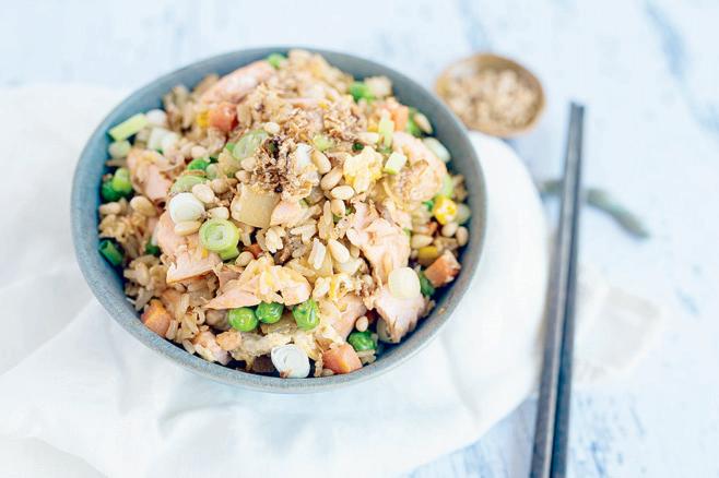 Cooked brown rice is also a great option for texture and a higher fibre content.