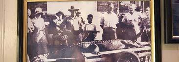 Information collated by the State Library of Queenland’s Myles Sinnamon included the report that rumours of a croc living in the river near Coomera “were confirmed when local storekeeper Alf Hinds, his brother Jack and local publican Charles Rumpf pulled the reptile’s dead body onto the river’s banks”.