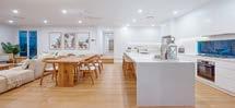 The large family room effortlessly flows onto the entertaining deck overlooking the lap pool