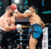 Wright takes on Thai boxer Pankhui for the WBF Heavyweight Champion of Victoria title. (Marty Camilleri/Marty’s Knockout Photography)