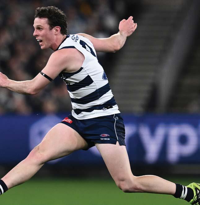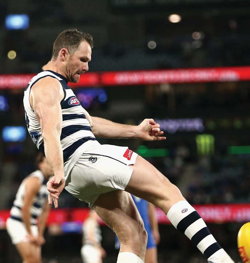 “The ultimate professional and the way he looks after his body,” he said. “He got crunched three or four times by Jez [Jeremy Cameron] and he jumped up with a smile.