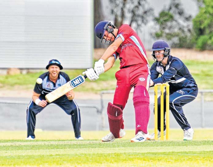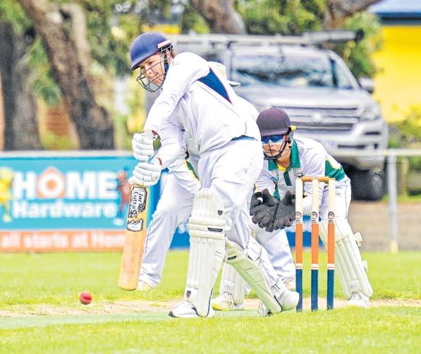 MEREDITH leapfrogged Little River into thirdspotontheladderwithatensetwo-run win. Skipper Tyler Dittloff made 74 with the Rams posting 9/205 batting first. Luke Wright picked up 2/18 from nine tidy overs for the Redbacks. In reply, Little River was alloutfor203withtwoballsofitsallotted45 overs remaining with Trent Archer making 79andChesneyMilnechippinginwith4/36 after being introduced into the attack late. However, the Redbacks were forced to bat one short with Joel Thompson injuring his anklewhilefieldingandwenttohospital. GUILD St Mary’s stayed on top of the ladderwithahugewinagainstTeesdale.The Saints posted a hefty 7/281 with Davinder Singh making 82 and David Thomas 79 while Kasim Khan Pathan scored 41 and Ricky Kennedy grabbed four wickets for Teesdale. Teesdale’s innings never got going, all out for 71, as Mitchell Vicary took the stunning figures of 5/9 and Shivam Guptasnared3/23.
