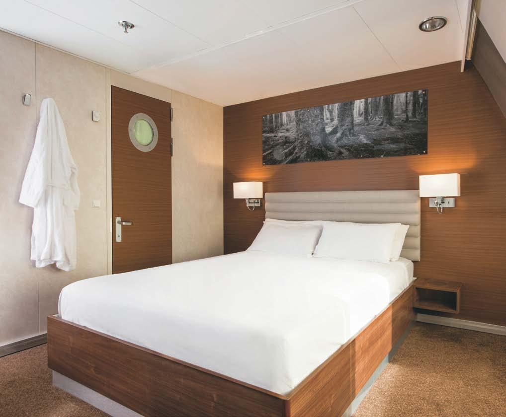 Families are well catered for with two cinemas showing the latest releases, a games arcade, a kids’ play area and a quiet reading room. Travellers can choose from deluxe or private cabins, or save