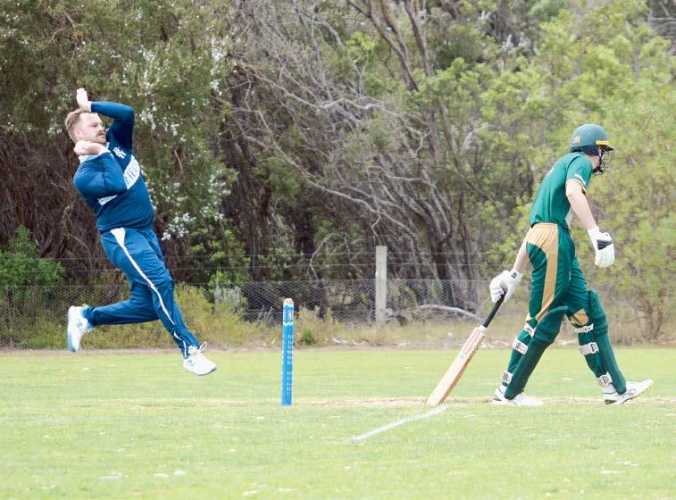 SEAMER James Burns again rose to the occasionforStLeonardswithahaulof5/33 from 16 overs against Surf Coast. Needing 300 for victory, Surf Coast was all out for 157 with Vic Rathore (38) top scoring and young Saints seam bowler Oscar Cutajar grabbing 2/21.