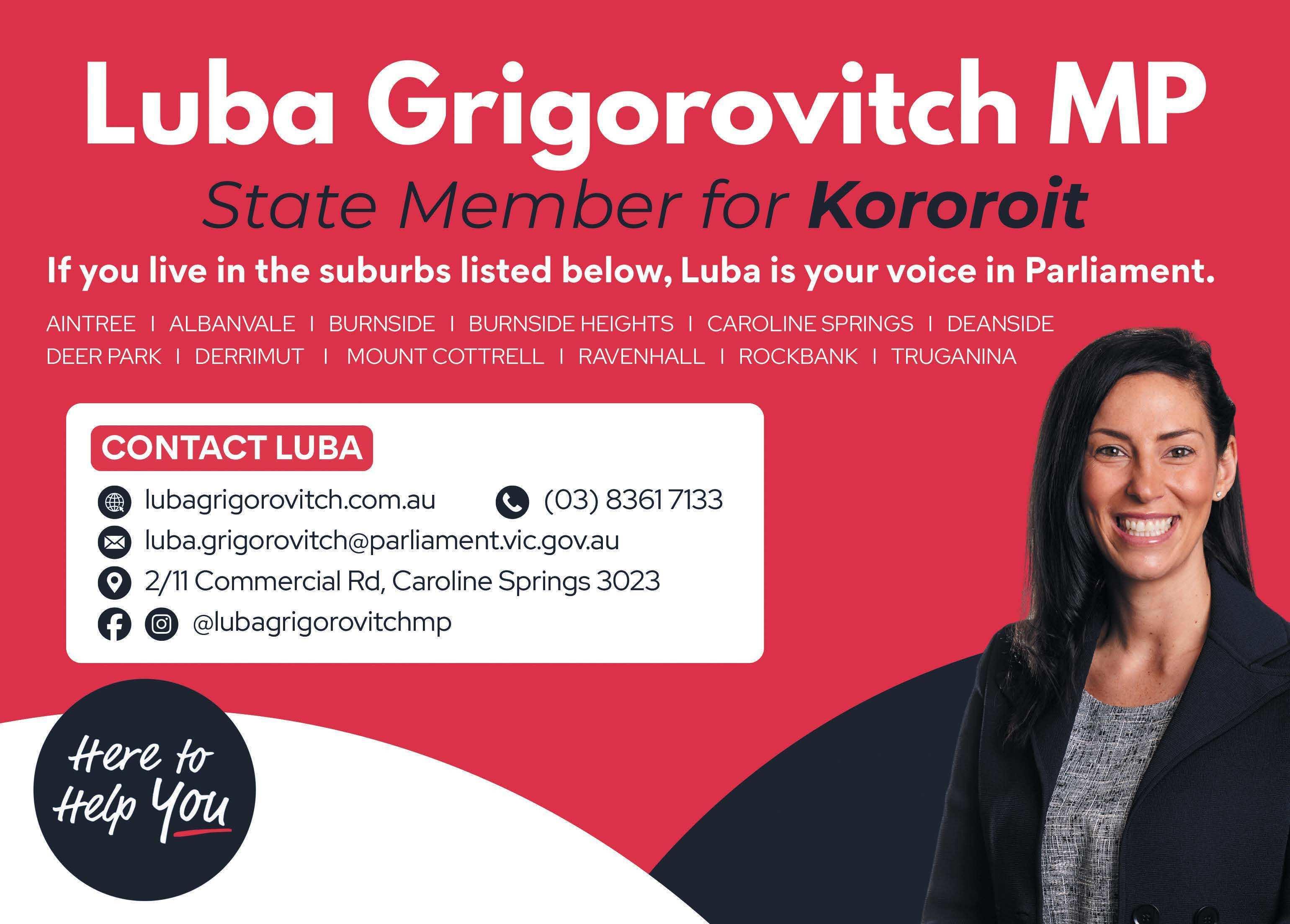 To join our mailing list and keep up with local news please email kororoit. electorate@parliamnt.vic.gov.au or phone 8361-7133