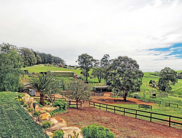 Gorgeous gardens with level lawns and parking, greenhouse, paddocks, creek access, dam, playground, and abundant local wildlife. ●