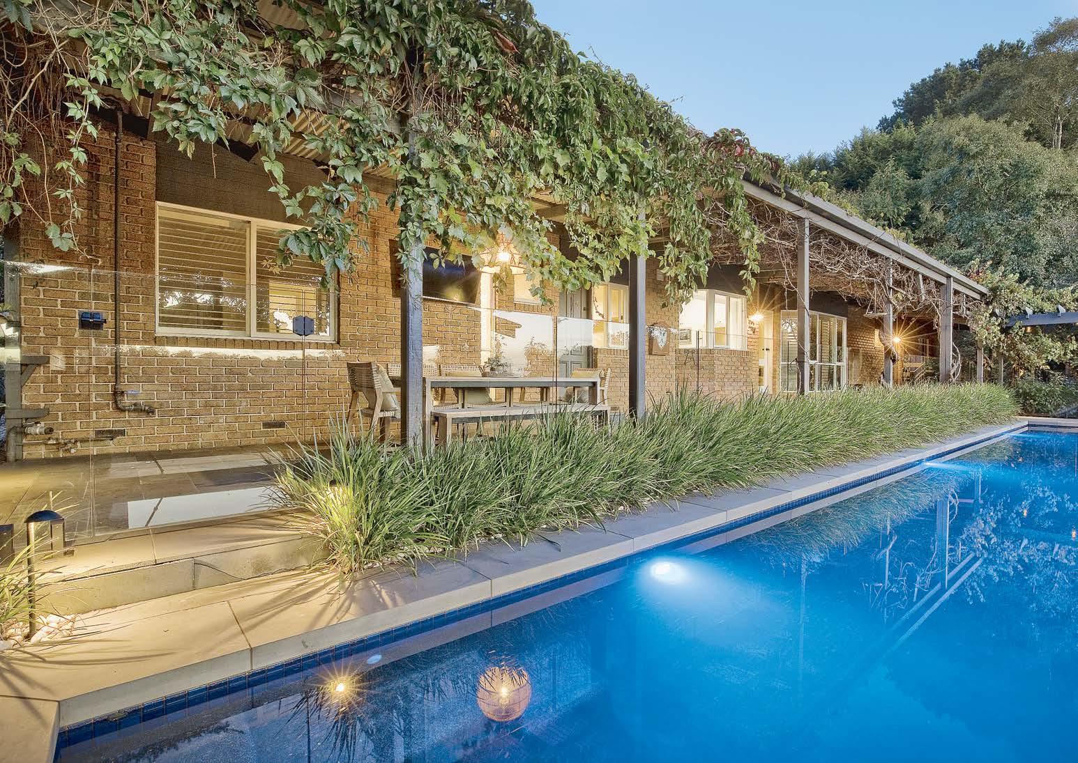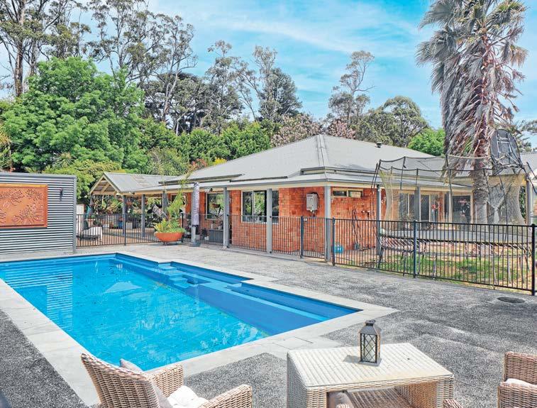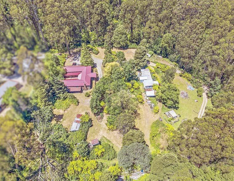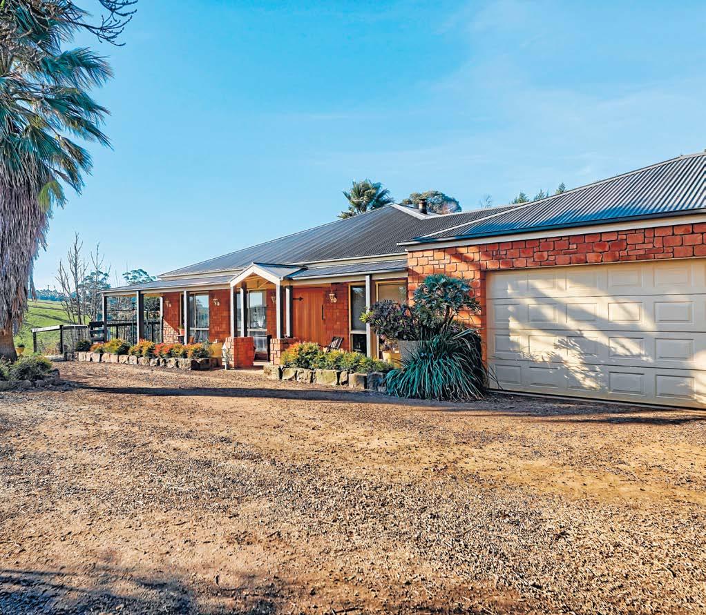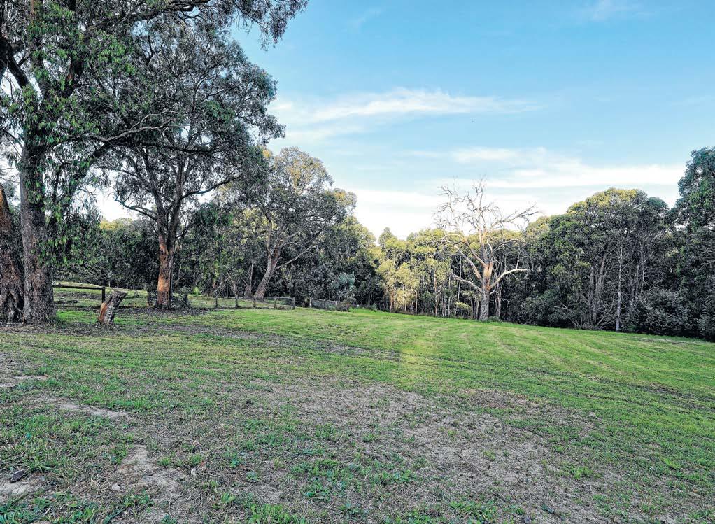 Gorgeous gardens with level lawns and parking, greenhouse, paddocks, creek access, dam, playground, and abundant local wildlife. ●