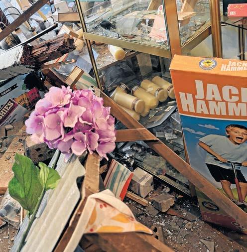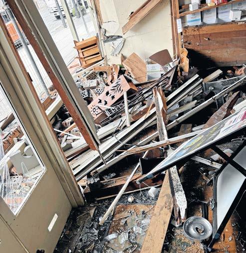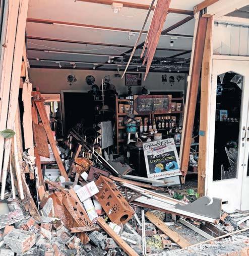front largely destroyed and the roof temporarily supported. Ms Telford said her first reaction was “holy crap.” The car was still there, and debris had flown from the front window through more than half the shop.