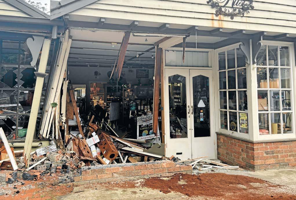 An allegedly stolen vehicle crashed straight into the front of Rubies and Rust and Touchstone Craft Gallery on Olinda-Monbulk Road in Olinda in the early hours of Friday morning, 16 January.