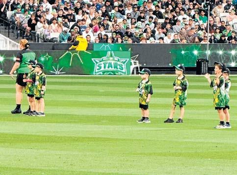 Each child received an Indigenous-designed Melbourne Stars playing shirt, along with a cap and flag to keep as a lasting memento of their experience. The night included two unforgettable on-field moments. While the Stars were fielding, the children paired up with players, meeting them face-to-face and having their caps signed. Later, they returned to the field to form a guard of honour as Tom Rogers and Sam Harper walked out to bat, waving their flags as fireworks lit up the stadium.