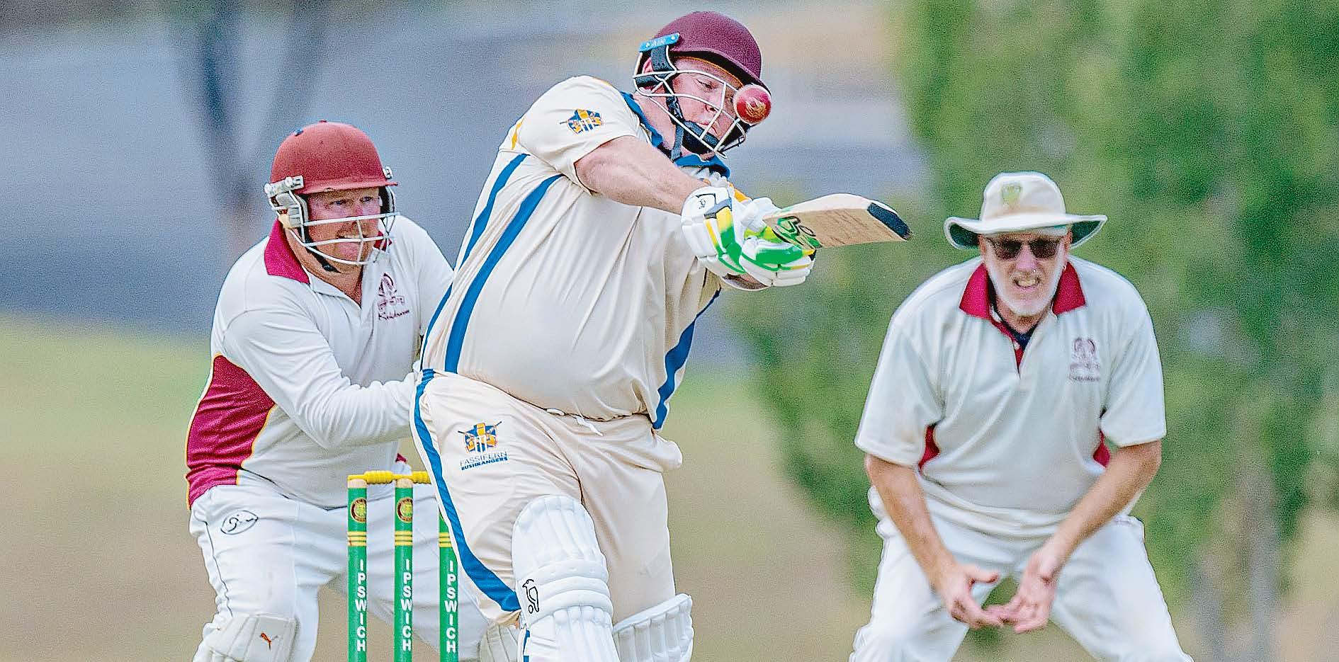 Fassifern Bushrangers batter Chris Hurlock throwing his hands at the ball. (Lyle Radford: 529169)