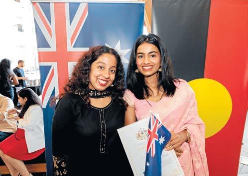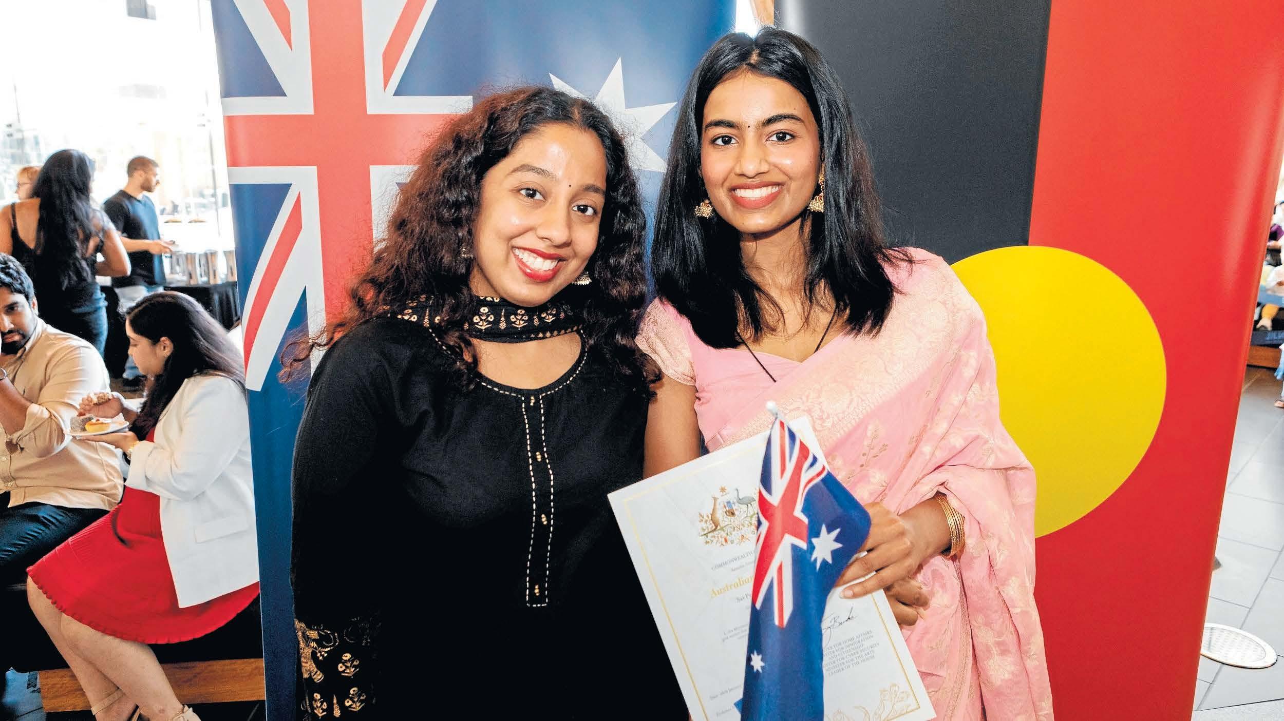 Rithika Godha and Sai Prathika Godha were among 200 new citizens who waved national flags and pledged allegiance at a citizenship cemerony at Bunjil Place on Australia Day.
