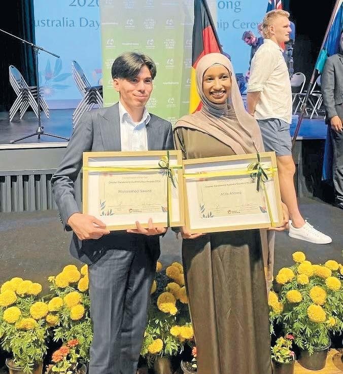 Truc Nguyen champions respectful relationships, pride, and equality, creating materials to support inclusive events. Sudammi Mudalige strengthens student voice and mentors younger students. Emmanuel Lacomel engages peers through arts, clubs, and school events that foster connection and spirit. Nayab Nawrozi supports student wellbeing through mentoring, peer mediation, and peer-topeer tutoring initiatives.
