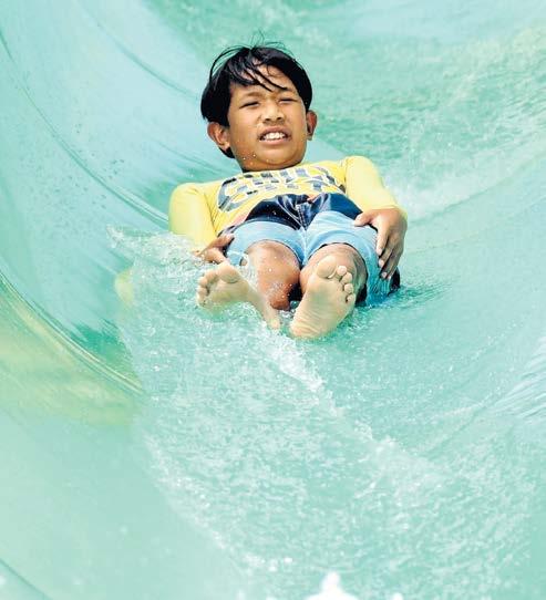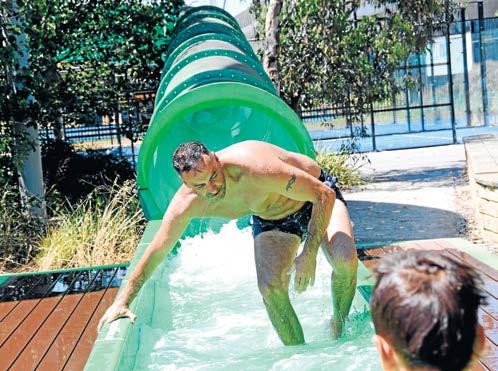 Steve from Dandenong North takes the plunge from Noble Park Aquatic Centre’s giant green waterslide during last Tuesday’s scorching heatwave. NPAC’s waters were filled by swimmers who found an enjoyable way to beat the heat.