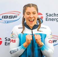 Bree Walker of Australia speeds down the track during the women’s monobob race at the Bobsleigh World Cup in Innsbruck, Austria. (AP