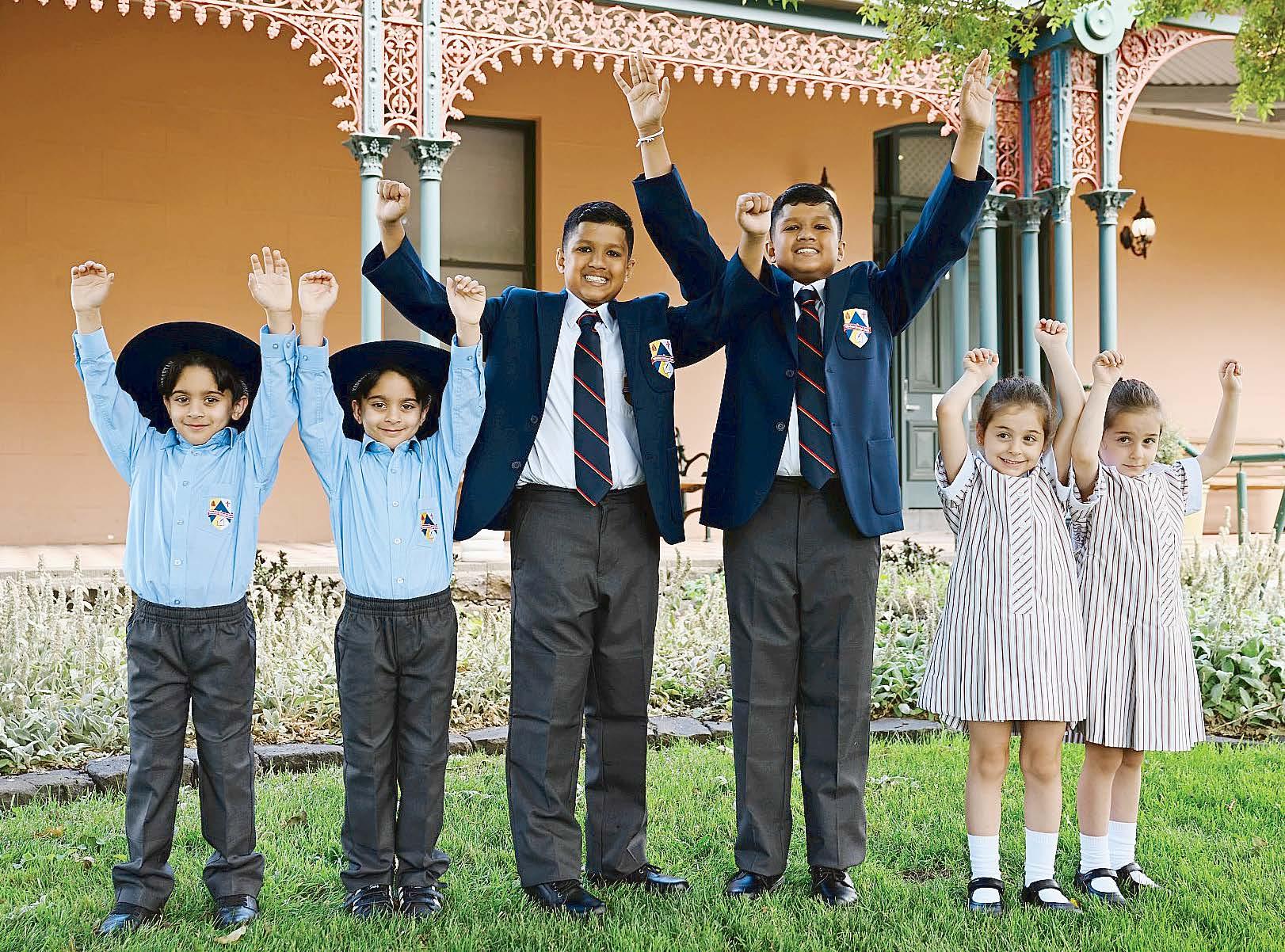 Nahin and Hafi, Yehan and Rehan, and Maryah and Maryam, are ready for their first day of school at Hume Anglican Grammar. (Damjan Janevski) 529035_02