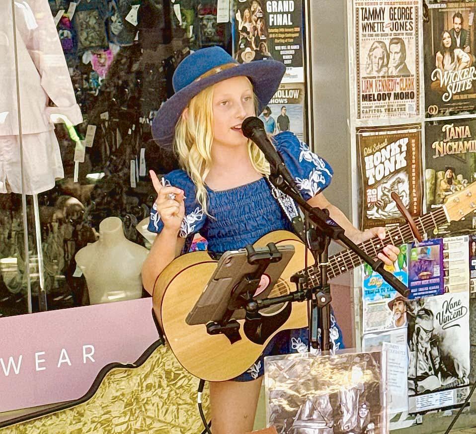 Georgia Stafford, an 11-year-old country music singer/songwriter from Noosa, attended her second Tamworth Country Music Festival with three clear goals: to open for Lee Kernaghan at TRECC, compete in the Golden Gig, sponsored by Macca’s, junior talent quest and debut three newly recorded original songs while busking on Peel Street.