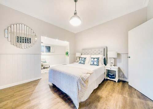 The expansive master suite is positioned at the front of the home and opens to a spectacular dressing room/walk in robe and a stylish ensuite featuring an oversized shower and abundant natural light. Across the hall, the generous second bedroom includes builtin robes, while the third bedroom is zoned privately at the rear of the home, also with built-in robes, garden views, and direct access to the elegant family bathroom complete with a claw foot bath and separate shower.