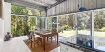 The property features a comfortable and beautifully presented one-bedroom converted residence with sealed floors, high vaulted ceilings and expansive open-plan living. A smart galley-style kitchen complements the space, while multiple high glass doors capture spectacular northeast views across sweeping lawns, native flora and four billabongs. Solid masonry Rockcote walls add durability and character to the home’s relaxed, light-filled charm.